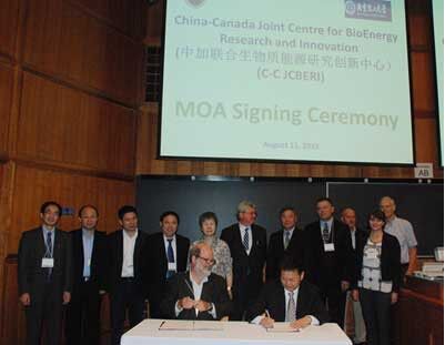 由中國北京化工大學(xué)和加拿大不列顛哥倫比亞大學(xué)聯(lián)合創(chuàng)辦的中加聯(lián)合生物質(zhì)能源研究創(chuàng)新中心11日在不列顛哥倫比亞大學(xué)正式成立。