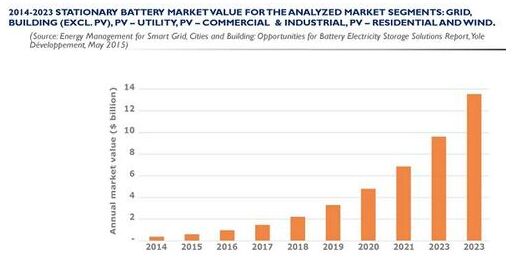 YoleDeveloppment預(yù)計(jì),全球固定式電池市場(chǎng)將在2023年達(dá)到近140億美元的市場(chǎng)規(guī)模。