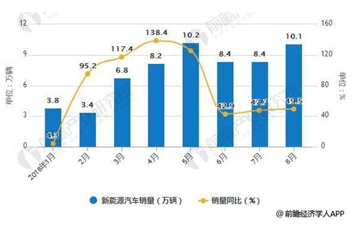 2018年1-8月新能源汽車產(chǎn)銷量統(tǒng)計及增長情況