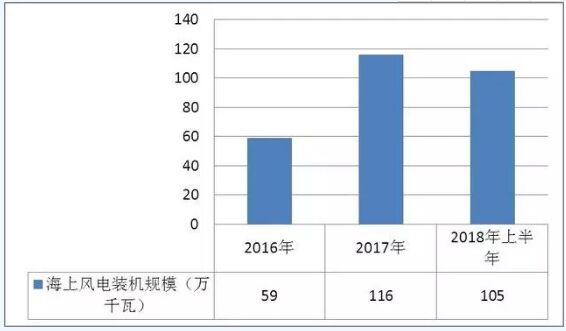圖表:2016-2018年上半年中國海上風電裝機容量