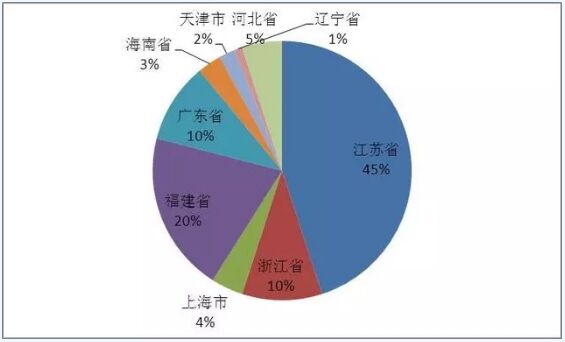四、項目投資主體分布 以海上風電投資開發(fā)成本14000元/KW測算,結合2020年我國海上風電累計裝機容量15.78GW的估計值,預計到2018-2020年我國海上風電建設投資市場空間約1800億元。 海上風電項目在硬件方面主要由風電機組、風塔及樁基、海底電纜三部分組成。在海上風電的總投資中,整機、風塔、海底光纜等設備投資約為50%,按照目前海上風電平均開發(fā)投資造價14000元/KW計算,2018-2020年面向整機制造商以及周邊部件供應商如樁基、海底光纜等的海上風電市場近900億元。 五、區(qū)域發(fā)展格局分析 根據(jù)國家《風電發(fā)展“十三五”規(guī)劃》,到2020年全國海上風電開工建設規(guī)模達到10GW,力爭累計并網(wǎng)容量達到5GW以上,重點推動江蘇、浙江、福建、廣東等省的海上風電建設。