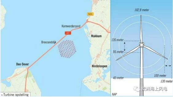 Fryslan風(fēng)電項(xiàng)目得到了荷蘭弗里斯蘭省5億歐元的資金支持,早在去年8月份就將西門子歌美颯作為首選風(fēng)機(jī)供應(yīng)商。預(yù)計(jì)將安裝89臺(tái)型號(hào)為SWT-4.3-130 的直驅(qū)風(fēng)機(jī)。Van Oord公司負(fù)責(zé)基礎(chǔ)和海纜的設(shè)計(jì)、制造和安裝,并將提供風(fēng)機(jī)安裝服務(wù)。 該風(fēng)場預(yù)計(jì)今年3月份做出最終投資決策,并在年內(nèi)開工建設(shè),到2021年全面投產(chǎn)發(fā)電。 艾瑟爾湖(Ijsselmeer)面積1100平方公里,平均深度5~6米,原是荷蘭中部的內(nèi)陸海灣。上世紀(jì)二十年代,荷蘭開始建設(shè)須德海,筑起長29公里、寬90米、高出海面7米的攔海大壩。1933年,阿夫魯戴克大堤(Afsluitdijk)將須德海隔開后,形成了人工湖。艾瑟爾湖成為這圍海造田的產(chǎn)物,是現(xiàn)在西歐最大的湖泊。1975年豪特里布大堤落成后,又將原來的艾瑟爾湖分隔為現(xiàn)在的艾瑟爾湖、馬爾肯湖兩部分。著名電影《敦刻爾克》中“月關(guān)石號(hào)”游艇的戲碼都是在這座湖上拍攝的。 開發(fā)商在建設(shè)風(fēng)場同時(shí),還要在阿夫魯戴克大堤以南建立一個(gè)自然保護(hù)區(qū)島嶼,島嶼陸地面積2公頃,水下面積25公頃。風(fēng)場建設(shè)期間,島嶼可以當(dāng)作工作平臺(tái)。后期,它將改造成為保護(hù)區(qū),為魚類和鳥類棲息及覓食提供場所。 “海風(fēng)”漲姿勢(shì): 我們平常提到最多的海上風(fēng)電實(shí)際屬于“離岸風(fēng)電”的一種,除此以外,還涵蓋一些內(nèi)陸水域,如胡泊,以及峽灣、有遮蔽的沿海地區(qū)水域建造的風(fēng)電場。