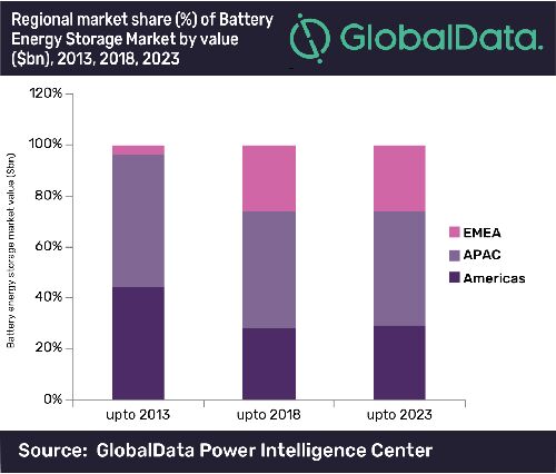 全球電池儲(chǔ)能市場(chǎng)預(yù)計(jì)到2023年將增長(zhǎng)到131.3億美元,全球知名的研究機(jī)構(gòu)GlobalData在其最新的研究報(bào)告中透露,亞太地區(qū)(APAC),歐洲、中東和非洲(EMEA)將成為預(yù)測(cè)期間電池儲(chǔ)能系統(tǒng)的主要市場(chǎng)。
