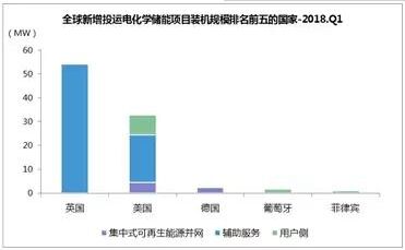 據(jù)EnergyTrend儲(chǔ)能不完全統(tǒng)計(jì),海外市場(chǎng)在2020年第一季度共發(fā)布了約3.59GW的投標(biāo),涵蓋了太陽(yáng)能發(fā)電、電池儲(chǔ)能系統(tǒng)及抽水發(fā)電儲(chǔ)能項(xiàng)目等。 其中,據(jù)行業(yè)機(jī)構(gòu)數(shù)據(jù)顯示,2018年一季度,全球新增投運(yùn)電化學(xué)儲(chǔ)能項(xiàng)目的裝機(jī)規(guī)模為94MW,同比下降37%。 從地域分布上看,英國(guó)新增投運(yùn)項(xiàng)目的裝機(jī)規(guī)模最大,為54.5MW,美國(guó)緊隨其后。英國(guó)和美國(guó)的項(xiàng)目主要應(yīng)用在輔助服務(wù)領(lǐng)域,該領(lǐng)域分別占英國(guó)和美國(guó)投運(yùn)項(xiàng)目的99%和60%。 從應(yīng)用分布上看,輔助服務(wù)領(lǐng)域的裝機(jī)規(guī)模最大,為73.8MW,占比為79%,同比增長(zhǎng)228%,用戶(hù)側(cè)和集中式可再生能源并網(wǎng)領(lǐng)域分列二、三位,占比分別為14%和7%。 從技術(shù)分布上看,鋰離子電池的裝機(jī)規(guī)模最大,為93.7MW,占比為99.7%,它在各類(lèi)應(yīng)用領(lǐng)域中均有分布,且其在輔助服務(wù)領(lǐng)域中所占的比重最大,為79%。
