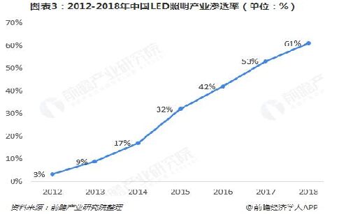 2020年行業(yè)產(chǎn)值規(guī)模突破1萬億元,滲透率達(dá)70% 2018年,LED照明行業(yè)作為節(jié)能減排的重點(diǎn)推行項(xiàng)目,在國家環(huán)保節(jié)能政策持續(xù)推行下,行業(yè)產(chǎn)業(yè)規(guī)模增速回暖,下游應(yīng)用滲透率進(jìn)一步擴(kuò)大。未來,將繼續(xù)受益于傳統(tǒng)照明政府限制政策以及LED技術(shù)的節(jié)能環(huán)保特性,LED照明正在快速替代傳統(tǒng)照明市場。 其實(shí),2017年,發(fā)改委等多部門聯(lián)合出臺(tái)了《半導(dǎo)體照明產(chǎn)業(yè)“十三五”發(fā)展規(guī)劃》,提出到2020年,我國半導(dǎo)體照明關(guān)鍵技術(shù)不斷突破,產(chǎn)品質(zhì)量不斷提高,產(chǎn)品結(jié)構(gòu)持續(xù)優(yōu)化,產(chǎn)業(yè)規(guī)模穩(wěn)步擴(kuò)大,到2020年,半導(dǎo)體照明產(chǎn)業(yè)整體產(chǎn)值要達(dá)到10000億元,LED照明產(chǎn)品銷售額占整個(gè)照明電器行業(yè)銷售總額的比例要達(dá)到70%。