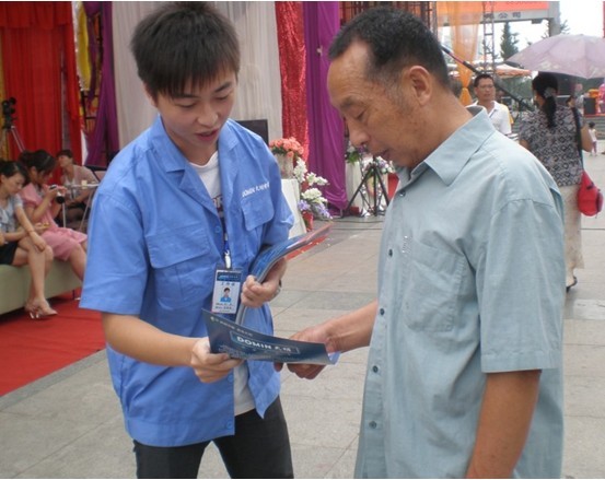在活動現(xiàn)場,大明燈業(yè)工作人員積極開展針對國家財政補貼高效照明產(chǎn)品推廣項目的宣傳活動。活動開始前60分鐘,公司推廣人員便到場布置主席臺,設(shè)置宣傳帳篷,擺放產(chǎn)品及展示架,張貼宣傳海報、準備圖冊和貨物等;顒又泄镜6名工作人員主動派發(fā)宣傳冊,通過公司制作的宣傳海報、手冊,熱心、誠懇的為在場市民現(xiàn)場講解照明節(jié)電知識,宣傳國家補貼政策和如何選購高效節(jié)能產(chǎn)品等。 活動總體策劃者大明燈業(yè)人事部經(jīng)理劉雪梅告訴記者,此次推廣活動的目的在于為高效照明產(chǎn)品的推廣作宣傳,以期盡可能幫助人們提高照明節(jié)能的意識。同時我們還希望通過這一活動,來宣傳國家財政補貼推廣高效照明產(chǎn)品的惠民政策,啟發(fā)和引導(dǎo)普通老百姓和大宗用戶購買高效照明產(chǎn)品的積極性和主動性,為我們今后中標產(chǎn)品的推廣工作起到更好的拉動作用,力爭為順利完成國家下達給我們大明的推廣任務(wù)多作一些努力。