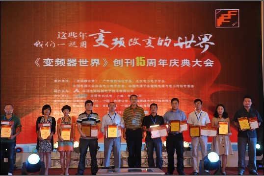 7月6日,《變頻器世界》聯(lián)合中自網(wǎng)舉辦的第九屆變頻器行業(yè)企業(yè)家論壇暨《變頻器世界》創(chuàng)刊15周年慶典大會在深圳市麒麟山莊隆重舉行,來自全國數(shù)百家變頻器及相關行業(yè)的企業(yè)家參加了此次盛會。動力源憑借高壓變頻器在業(yè)內(nèi)的良好口碑和強大的合同能源管理項目運作能力,榮獲“2011~2012年高壓變頻器十大品牌”和“2011~2012年合同能源管理十大品牌”兩項大獎。