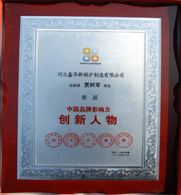 河北鑫華新鍋爐制造有限公司日前受邀,參加在北京釣魚臺由“亞洲品牌建設(shè)協(xié)會”、“第一財經(jīng)日報社”、“商務(wù)時報”主辦的2008年亞洲影響力品牌領(lǐng)袖年會,暨2008年度亞洲·中國·品牌500強推介發(fā)布頒獎盛典,并成功獲得“中國品牌競爭力500強”的企業(yè)榮譽,公司總經(jīng)理賈樹軍榮獲“中國品牌影響力創(chuàng)新人物”稱號。