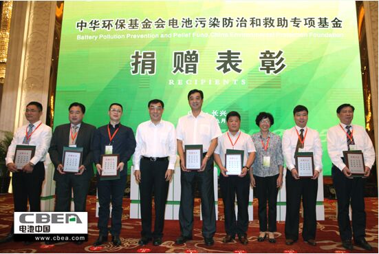 圖為表彰電池污染防治和救助專項基金捐贈機構(gòu)