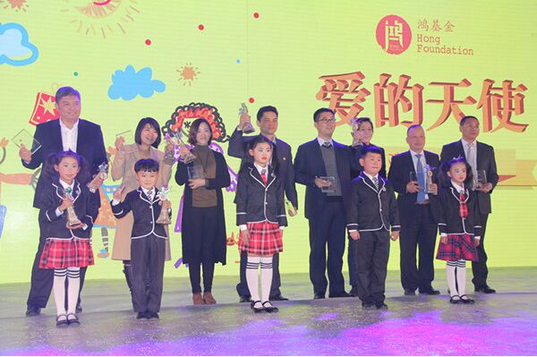 遠東慈善基金會獲得鴻基金頒發(fā)的“愛的天使”榮譽 徐浩然(左四)上臺領(lǐng)獎