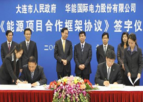 3月4日,華能國(guó)際電力股份有限公司與大連市政府在京簽訂《能源項(xiàng)目合作框架協(xié)議》,中國(guó)華能集團(tuán)公司總經(jīng)理、黨組副書記、股份公司董事長(zhǎng)曹培璽、副總經(jīng)理張廷克,大連市市長(zhǎng)夏德仁出席簽字儀式。股份公司總經(jīng)理、黨組副書記劉國(guó)躍,大連市常務(wù)副市長(zhǎng)肖盛峰代表雙方簽訂協(xié)議。股份公司黨組書記、副總經(jīng)理范夏夏主持儀式。