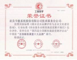 9月24日,第四屆全國(guó)顧客滿意度測(cè)評(píng)活動(dòng)揭曉發(fā)布暨頒獎(jiǎng)大會(huì)在西安舉行,雙良節(jié)能系統(tǒng)股份有限公司憑借其前瞻的服務(wù)理念、優(yōu)質(zhì)的服務(wù)實(shí)踐以及良好的口碑,榮獲“全國(guó)顧客滿意十大品牌”稱號(hào)。
