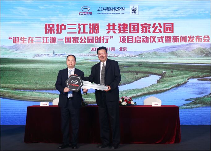 11月2日,由廣汽傳祺、三江源國家公園管理局(后簡稱:三江源管理局)和世界自然基金會(后簡稱:WWF)聯(lián)合主辦的“誕生在三江源-國家公園創(chuàng)行”項目啟動儀式暨新聞發(fā)布會在北京會議中心隆重召開。青海省委常委、省委改革辦主任馬順清,中國環(huán)境與發(fā)展國際合作委員會副秘書長徐慶華,三江源管理局黨委書記、局長李曉南,WWF中國總干事盧思騁,廣汽集團執(zhí)行委員會副主任、廣汽乘用車總經(jīng)理郁俊,國家林業(yè)局保護司司長張希武,國家發(fā)改委農(nóng)經(jīng)司副司長方言,國務(wù)院發(fā)展研究中心研究員蘇楊,廣汽乘用車副總經(jīng)理梁偉彪,WWF總部籌資執(zhí)行總監(jiān)Carol Monoyios等領(lǐng)導(dǎo)出席。此外還有來自國家環(huán)保部、水利部等機構(gòu)領(lǐng)導(dǎo)和專家,國際組織代表以及媒體代表共同見證了此次活動。