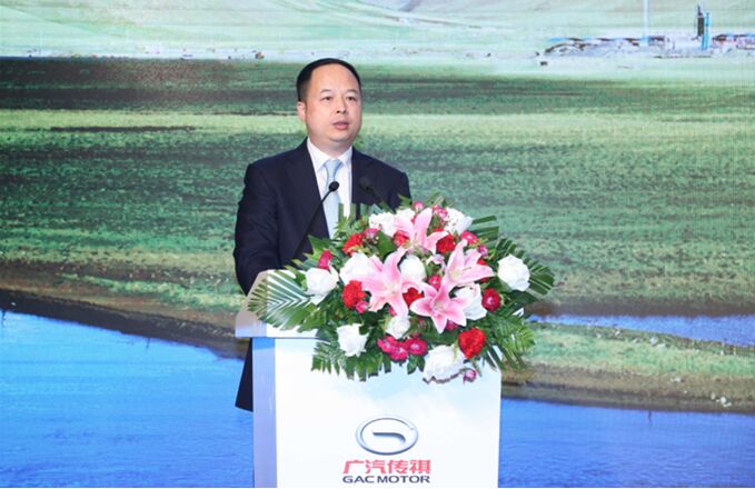 (廣汽集團執(zhí)行委員會副主任、廣汽乘用車總經(jīng)理郁俊在啟動儀式上致辭)