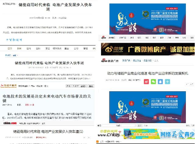 2017第二屆亞太電池展將于8月16-18日在廣州·中國進(jìn)出口商品交易會(huì)展館A區(qū)隆重舉行,近日,人民網(wǎng)、廣東經(jīng)濟(jì)網(wǎng)、廣東之窗、中國經(jīng)濟(jì)網(wǎng)、中國日?qǐng)?bào)網(wǎng)、深圳經(jīng)濟(jì)網(wǎng)、京華網(wǎng)(京華時(shí)報(bào))、中華網(wǎng)經(jīng)濟(jì)頻道、中國新聞網(wǎng)、中國網(wǎng)科學(xué)頻道、中國日?qǐng)?bào)網(wǎng)、中國貿(mào)易新聞網(wǎng)、中國科技網(wǎng)、中國財(cái)經(jīng)時(shí)報(bào)網(wǎng)、亞洲網(wǎng)新聞、新浪廣西、新華網(wǎng)巴中頻道、騰訊汽車、搜狐媒體、汽車點(diǎn)評(píng)網(wǎng)、齊魯在線、京華網(wǎng)(京華時(shí)報(bào))、環(huán)球汽車網(wǎng)、華訊財(cái)經(jīng)網(wǎng)、廣佛都市網(wǎng)、莞訊網(wǎng)、東莞信息港財(cái)經(jīng)、第一財(cái)經(jīng)網(wǎng)、大洋網(wǎng)新聞、財(cái)經(jīng)中國、新快網(wǎng)、網(wǎng)易、金羊網(wǎng)科技頻道、和訊河南頻道、廣州視窗、鳳凰網(wǎng)邵陽汽車、東方財(cái)富網(wǎng)、大公網(wǎng)財(cái)經(jīng)頻道、21CN科技頻道、財(cái)經(jīng)界等近50家知名媒體對(duì)其進(jìn)行了報(bào)道。