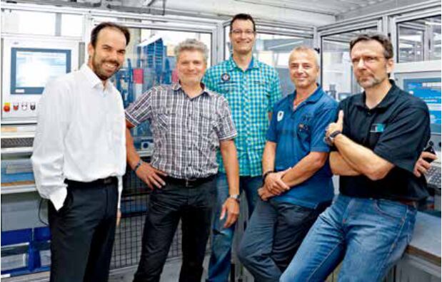 Wilm Schadach,倍福萊茵/魯爾區(qū)辦事處;Achim Ihlefeld,Aumat Maschinenbau 公司技術(shù)總監(jiān);Wilka Schließtechnik 公司鑰匙生產(chǎn)主管 Manuel Krümmel 和 電氣維護(hù)經(jīng)理 Mark Straka;以及 AST 公司總經(jīng)理 Wilfried Wengenroth(從左至右) 對(duì)于鑰匙行業(yè)及對(duì)于專營鑰匙生產(chǎn)的德國費(fèi)爾貝特的 Wilka Schliestechnik 公司來說,最典型的特點(diǎn)是每天會(huì)接到大量定制生產(chǎn)訂單。技術(shù)總監(jiān) Olaf Witte 解釋道:“在某種意義上說,我們的批量生產(chǎn)與單件流生產(chǎn)可以完美結(jié)合于一體。一個(gè)訂單可能包含 1000 個(gè)相同類型的產(chǎn)品,但每個(gè)產(chǎn)品又都是不同的 —直到為了某個(gè)備用鑰匙的單一訂單!盬ilka 的生產(chǎn)在結(jié)構(gòu)上具有相應(yīng)的靈活性,擁有多種特種機(jī)床,這些機(jī)床是由德國佐林根的 Aumat Maschinenbau 公司與烏帕塔爾的系統(tǒng)集成商 AST 公司共同開發(fā)的。